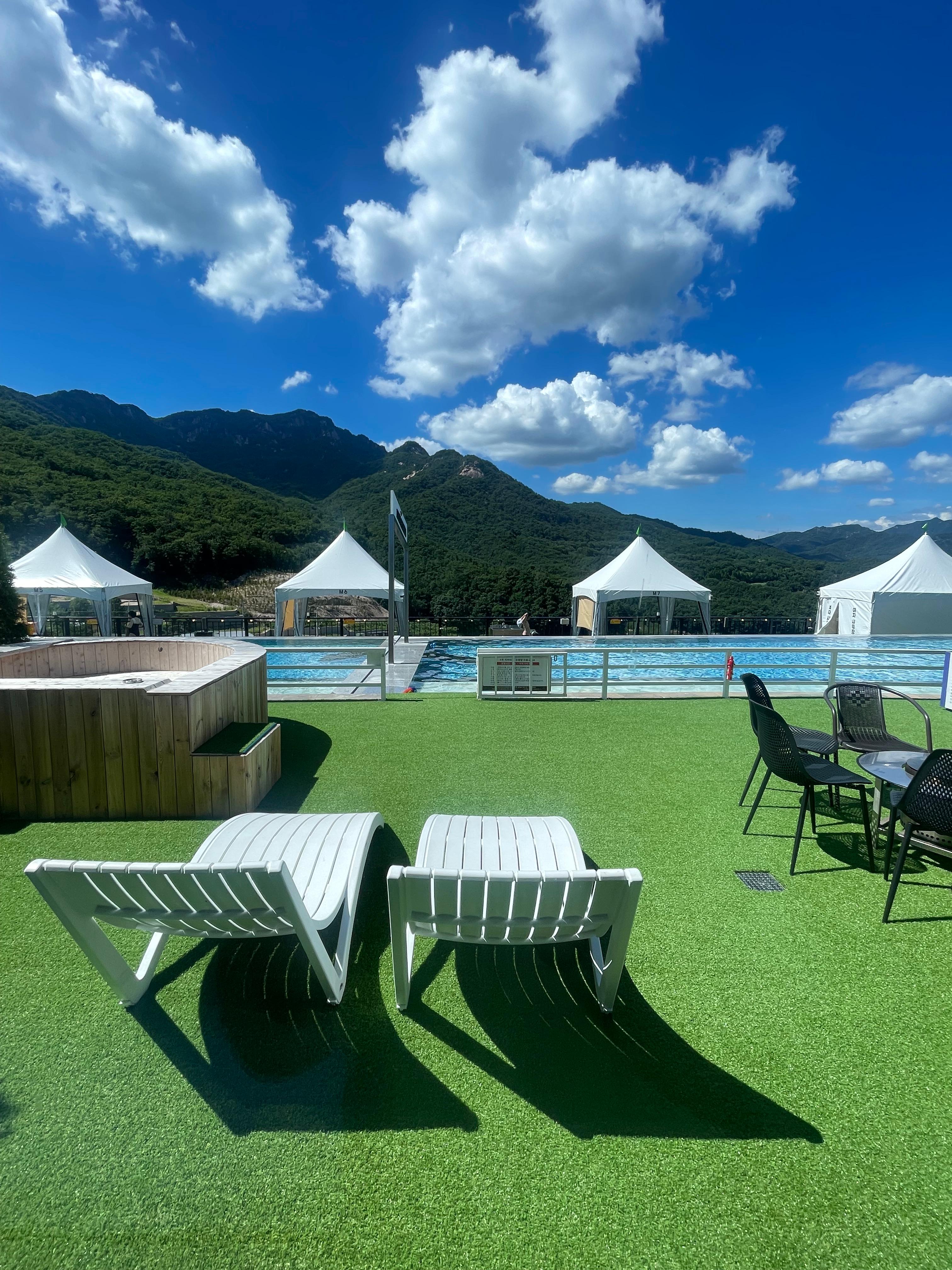 가평 Soldier 리조트를 대표하는 시설 중 하나는 여름철 운영되는 야외 수영장입니다. 넓고 청결하게 관리되는 수영장은 가족 단위, 연인, 친구 모두가 즐길 수 있는 완벽한 공간입니다. 아이들을 위한 얕은 키즈풀과 성인 전용 구역이 분리되어 있어 안전하게 물놀이를 즐길 수 있으며, 구명조끼와 안전요원이 마련되어 있어 더욱 안심할 수 있습니다.