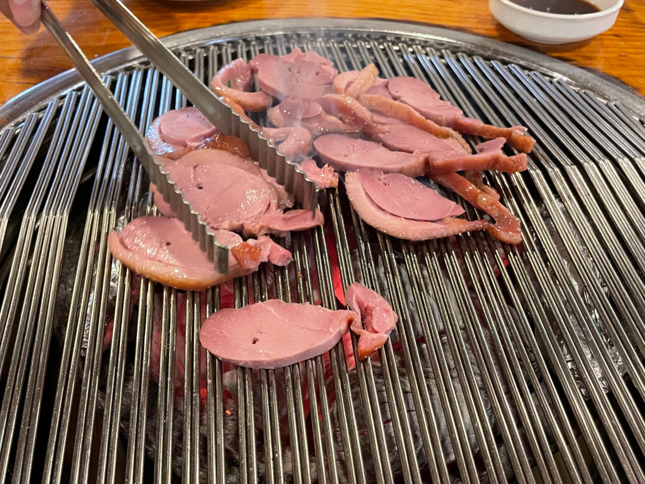 불판에 올려진 오리고기는 삼겹살보다 더 담백하면서도 고소한 향이 살아 있습니다. 장작불에 구워내니 불향이 깊게 배어, 첫 입부터 ‘아, 이래서 사람들이 오리구이를 찾는구나’ 하는 생각이 들었습니다. 겉은 노릇하게 익고 속은 부드럽게 살아 있어 씹는 식감이 아주 좋습니다.