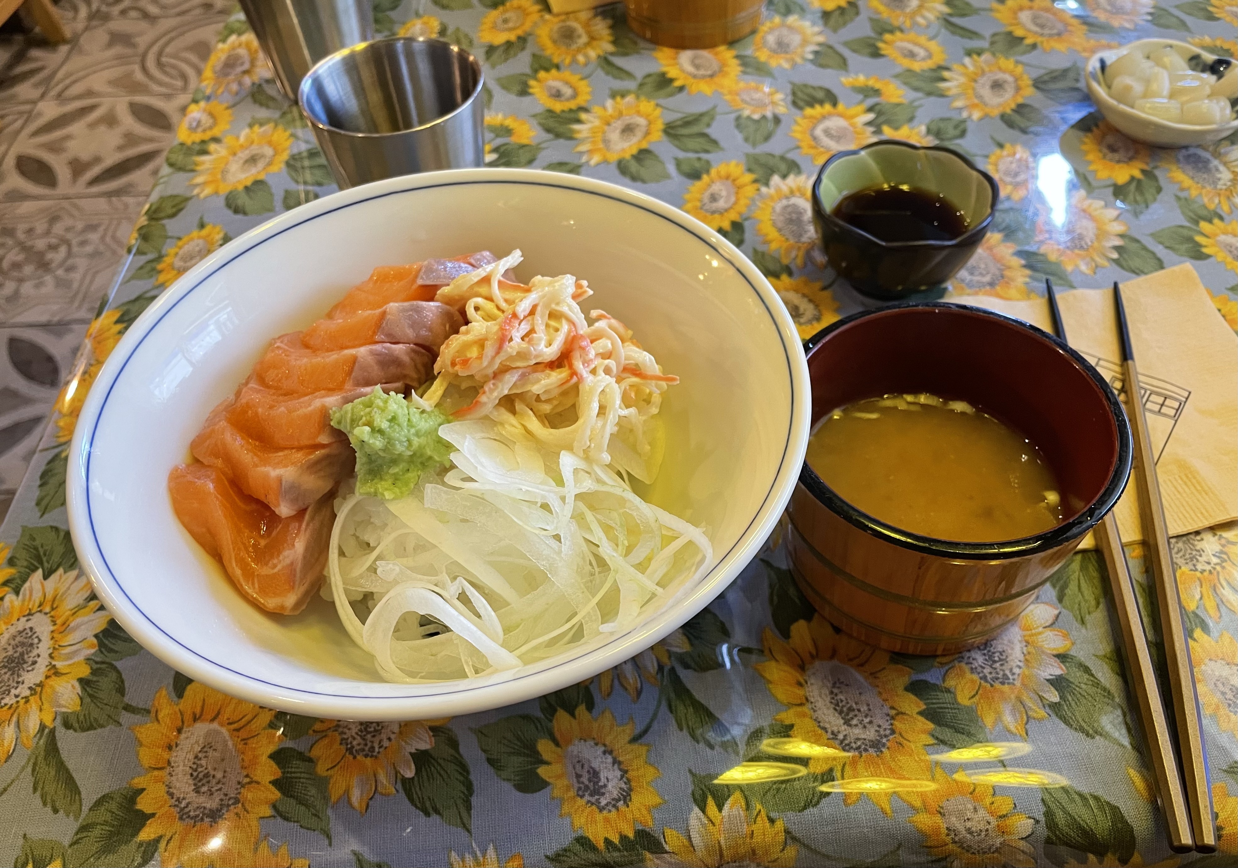 메뉴 다양성 또한 빼놓을 수 없는 매력입니다. 오키초밥은 기본 초밥 외에도 덮밥류와 면 요리를 함께 제공합니다. 그중에서도 인기 있는 메뉴는 연어 덮밥과 갈비 덮밥입니다. 연어 덮밥은 신선한 연어 슬라이스가 듬뿍 올려져 있어 담백하면서도 고소한 맛이 일품입니다. 신선한 와사비와 간장을 곁들이면 한 끼로 충분히 만족할 수 있는 든든한 메뉴가 됩니다.